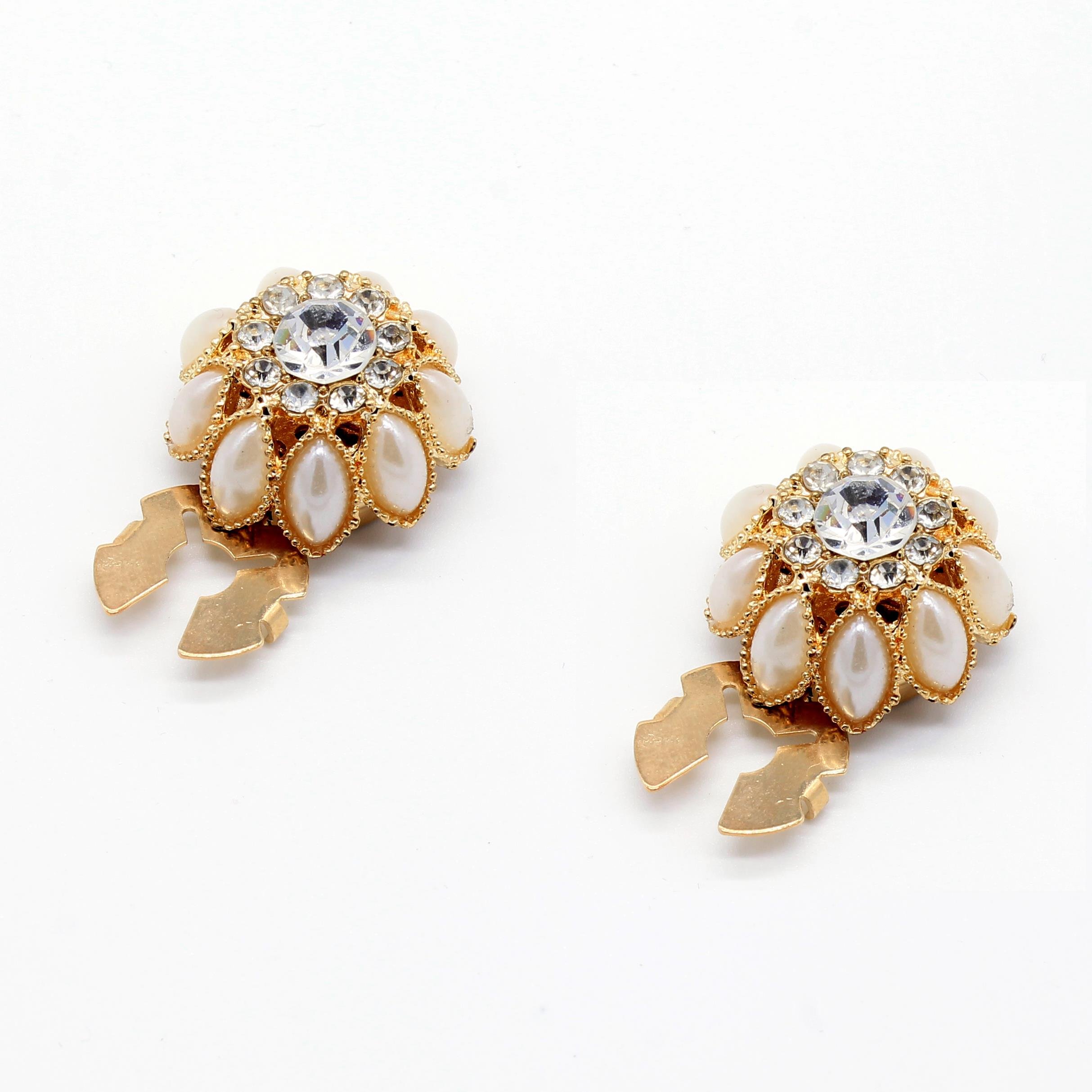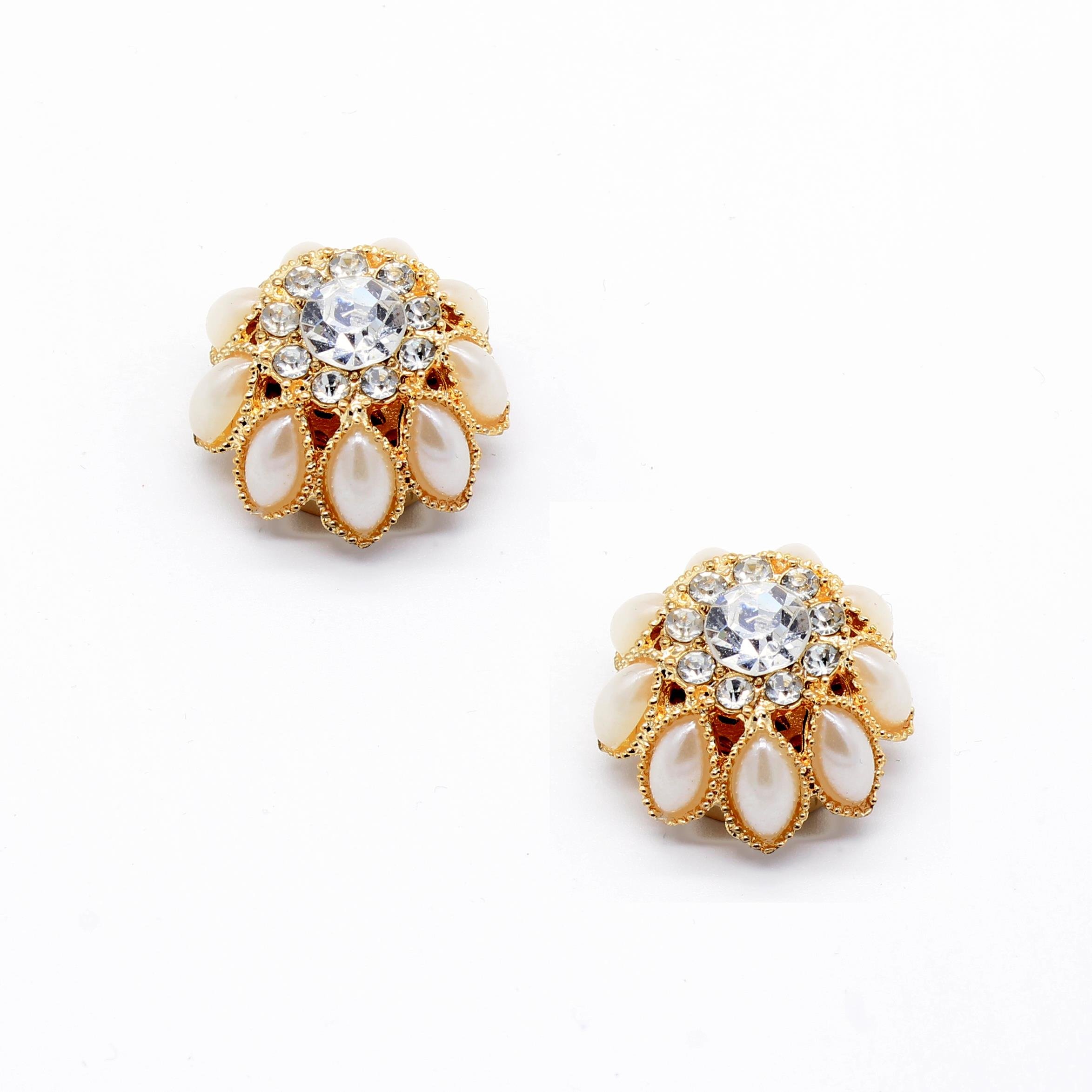 Beyaz İnci ve Taşlı Geçmeli Kol Düğmesi